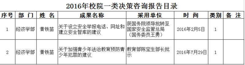 2016年校院一类决策咨询报告目录