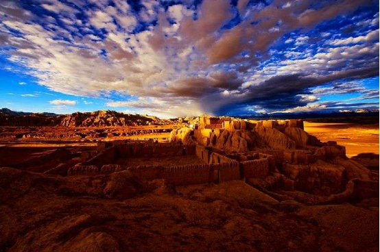 走出古城,已是暮霭沉沉。作为它的仰慕者,虽渴望古代戍边人那“白日登高望烽火,黄昏饮马傍交河”的壮丽人生,却不希望再有“年年战骨埋荒外,空见蒲桃入汉家”的残酷争战!