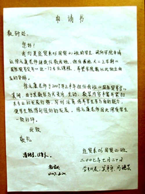 . 学生要求徐元康老师任教申请书 |