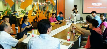 7月6日,在浙江省委党校干部教育学院和经济学教研部的协调安排下,调研组一行到了杭州未来科技城考察和调研,先后在梦想小镇、余杭四无粮仓陈列馆、湾西加速器、海龟科技公司进行考察,听取了调研单位的介绍,并在海龟科技公司与企业负责人就新型创业型企业的员工招聘、盈利模式、服务提供、资源对接、股权融资等议题进行了深入交流。