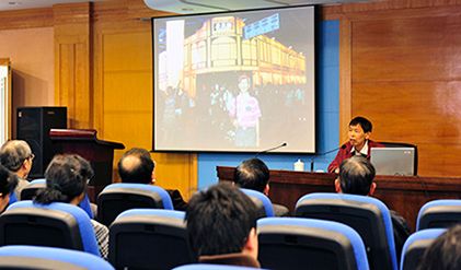 缪国亮教授用自己拍摄的照片介绍上海世博会 |