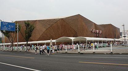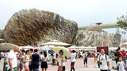 西班牙馆外形是由8524块藤条板编织的“藤条篮子” |