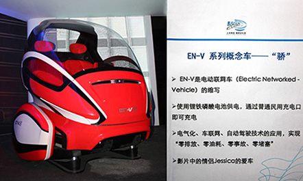 上汽集团-通用汽车馆内展出的应用电气化、车联网和自动驾驶技术的电动联网车 . |