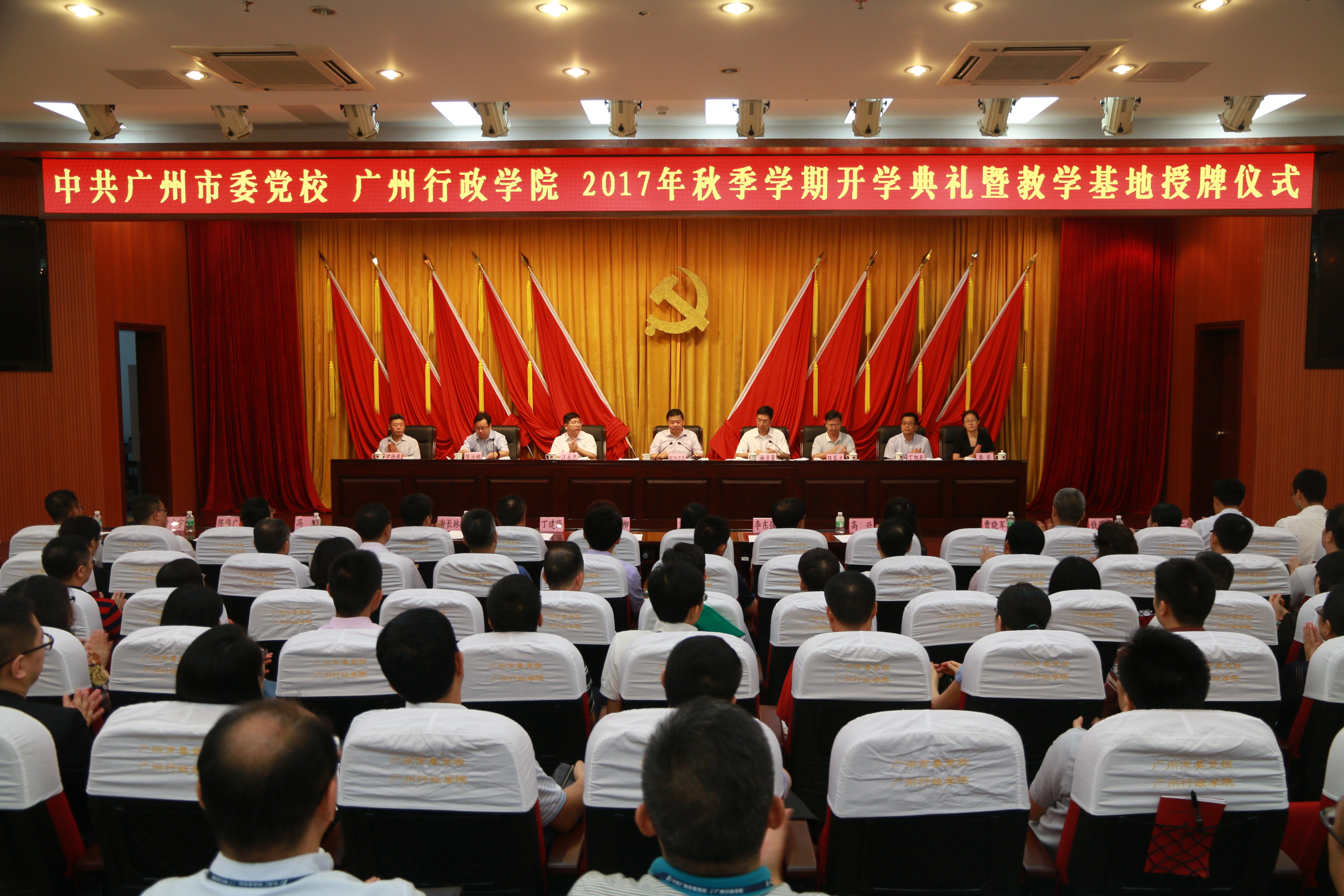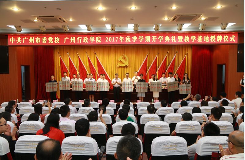 (广州日报综合消息)9月13日,广州市委党校举行2017年秋季开学典礼。广州市委副书记、市委党校校长、广州行政学院院长欧阳卫民出席典礼作开学动员并为党校第一批现场教学基地授牌。杨清蒲常务副校长主持开学典礼。广州市委宣传部副部长江永忠、市人社局副巡视员陈泰才,校领导陈治桃、丁旭光、尹德慈、单良出席开学典礼。市委组织部、市委宣传部、市人社局有关部门负责人,校教职员工参加开学典礼。