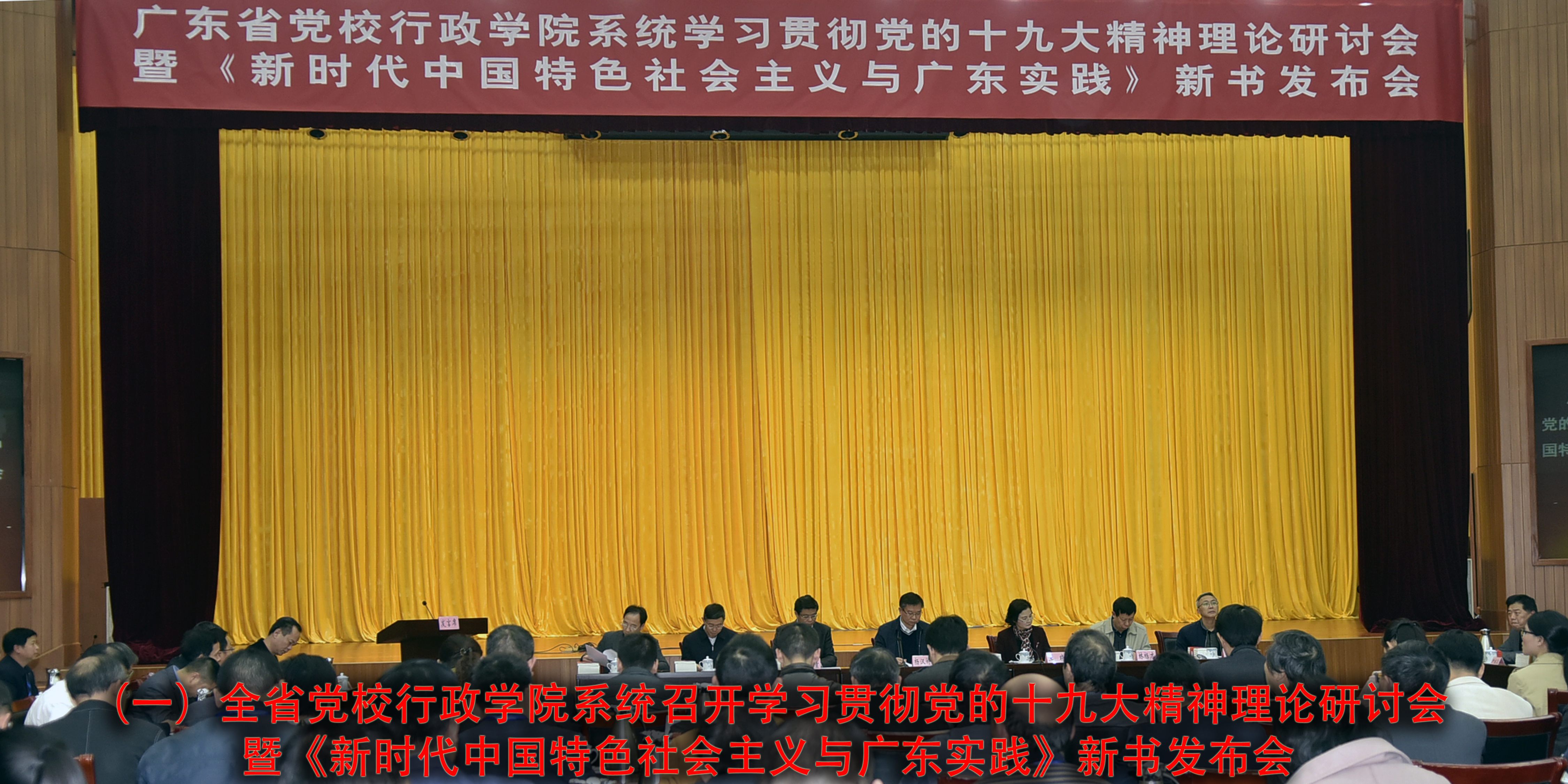 2017年12月28日下午,广东省党校行政学院系统学习贯彻党的十九大精神理论研讨会暨《新时代中国特色社会主义与广东实践》新书发布会在我校院举行。常务副校院长杨汉卿,省社科联主席王晓,省出版集团有限公司党委副书记、总经理杜传贵出席会议。会议由校院委委员方真主持。来自全省党校行政学院系统的领导及入选论文作者代表,校院有关部门负责同志,南方出版传媒股份有限公司、广东人民出版社有关领导和嘉宾共110余人参加会议。