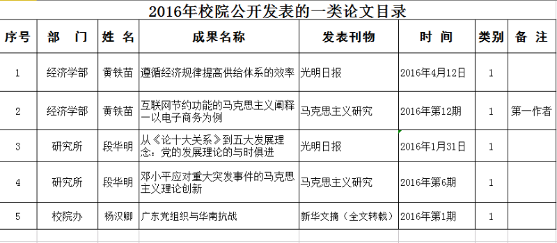 2016年校院公开发表的一类论文目录