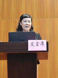 获奖论文作者岳芳敏教授在大会作交流发言 |