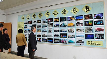 参会人员在校(院)文体中心书画室参观《上海世博文化摄影展》 |